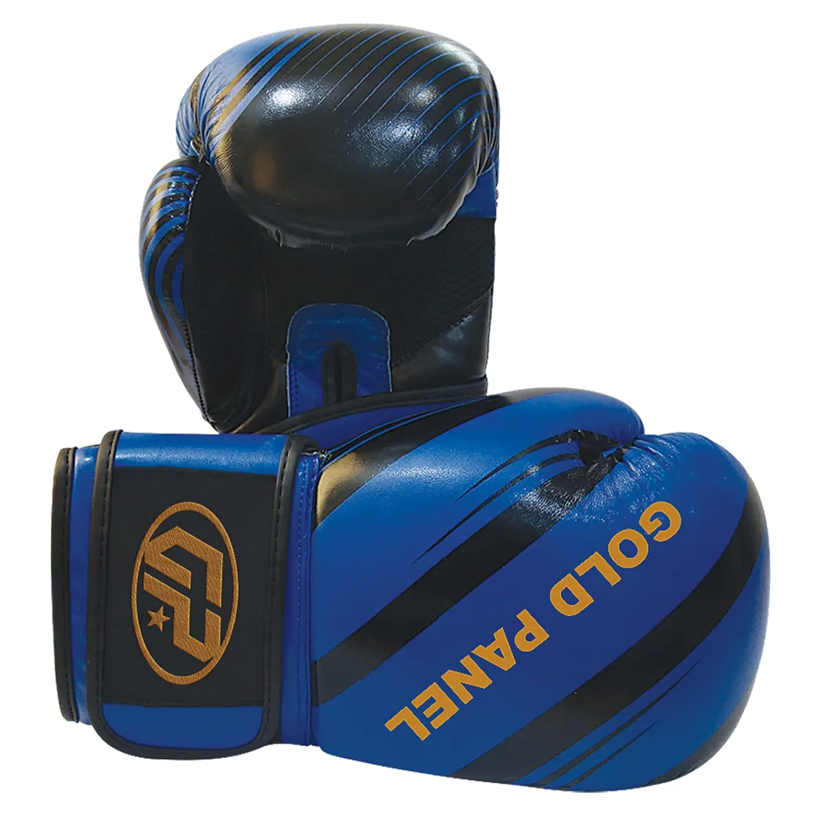 Striking black and blue color scheme with Gold Panel logo.